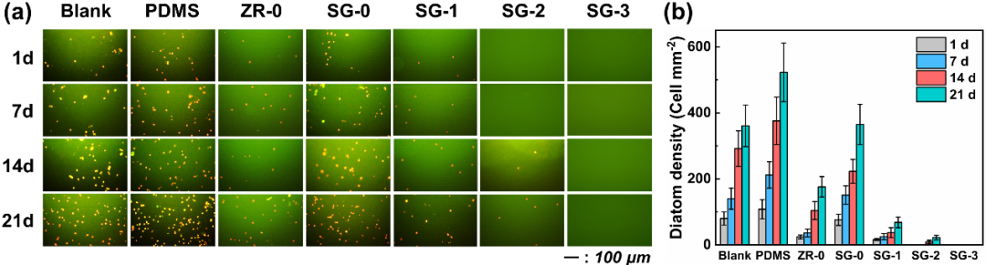 此前,中国科学院海洋研究所海洋关键材料重点实验室、海洋环境腐蚀与生物污损重点实验室段继周团队成功研发了结合脲键、硫脲键与抗菌多酚生物粘合剂单宁酸(TA)的有机硅聚脲硫脲/单宁酸复合防污涂层。 该涂层通过动态多重氢键实现自修复,并凭借抗菌TA分子、纳米级粗糙度和低表面能特性,展现了出色的抗菌和抗硅藻附着能力。 随后,团队进一步开发了含有抗菌小分子硫辛酸-苯并噻唑的有机硅聚脲/氨酯涂层,利用非共价氢键和二硫键的协同作用,增强了涂层的力学性能和自修复性能,同时实现了环境友好性。