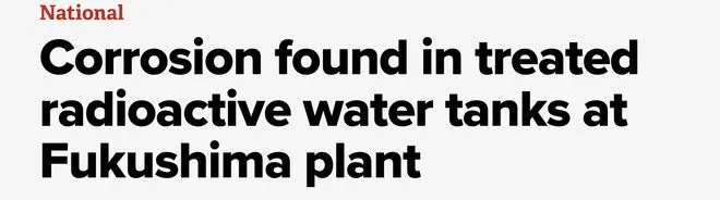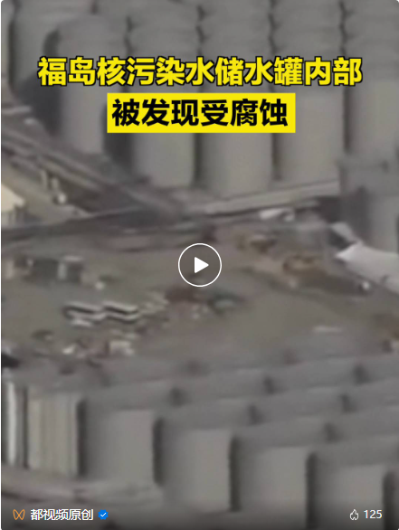 报道称,东京电力公司自2023年8月开始向海洋排放核污染水,2024年3月,已经排空的3个储水罐内侧下部,被发现有腐蚀迹象,此外还有涂层脱落现象。