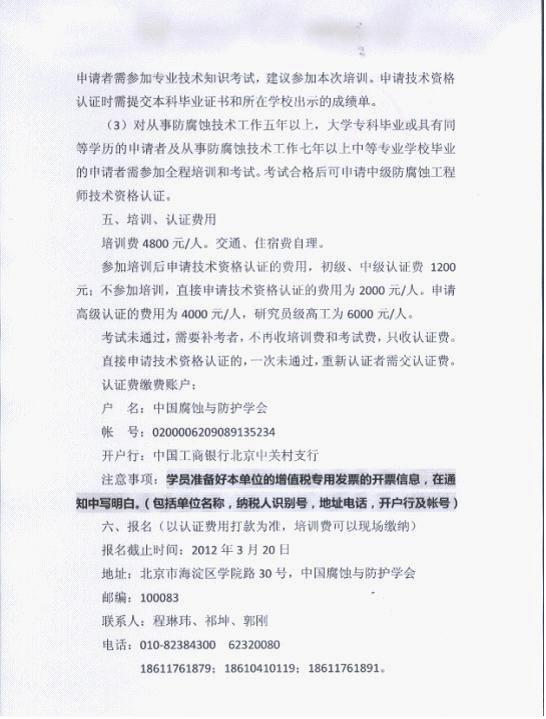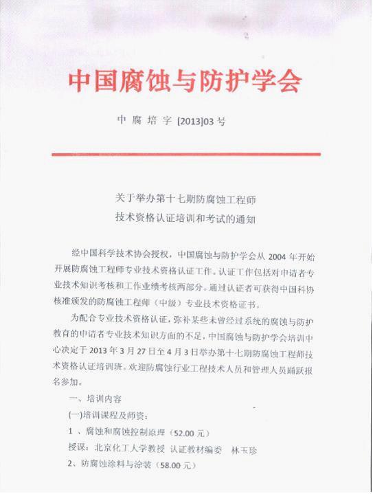 关于举办第十七期防腐蚀工程师技术资格认证培训和考试的通知