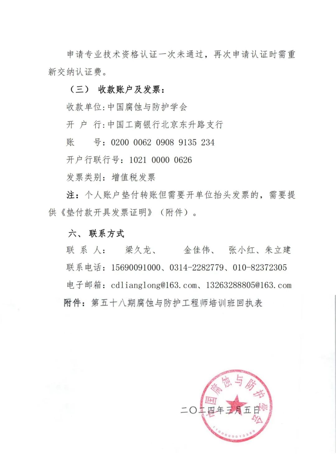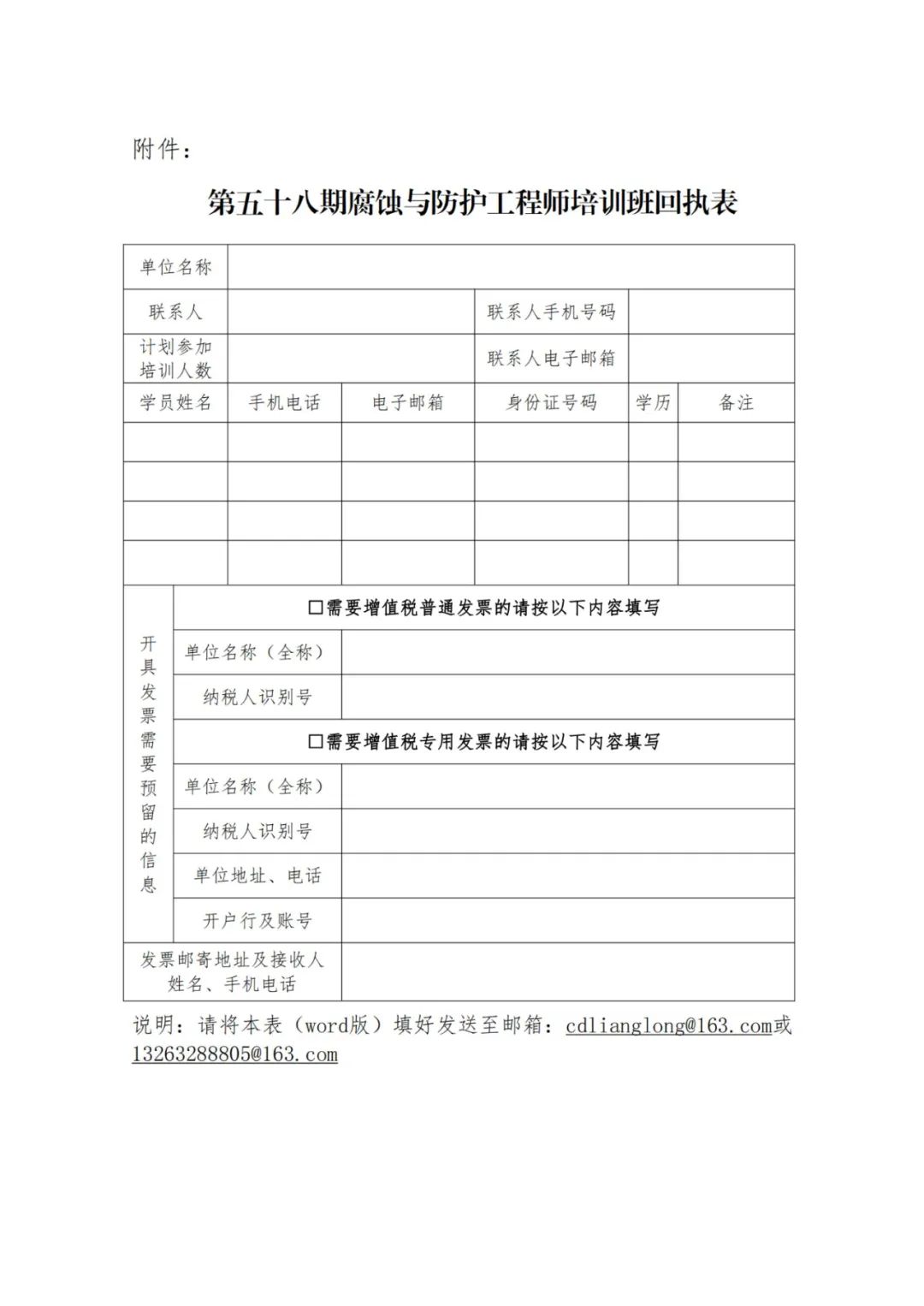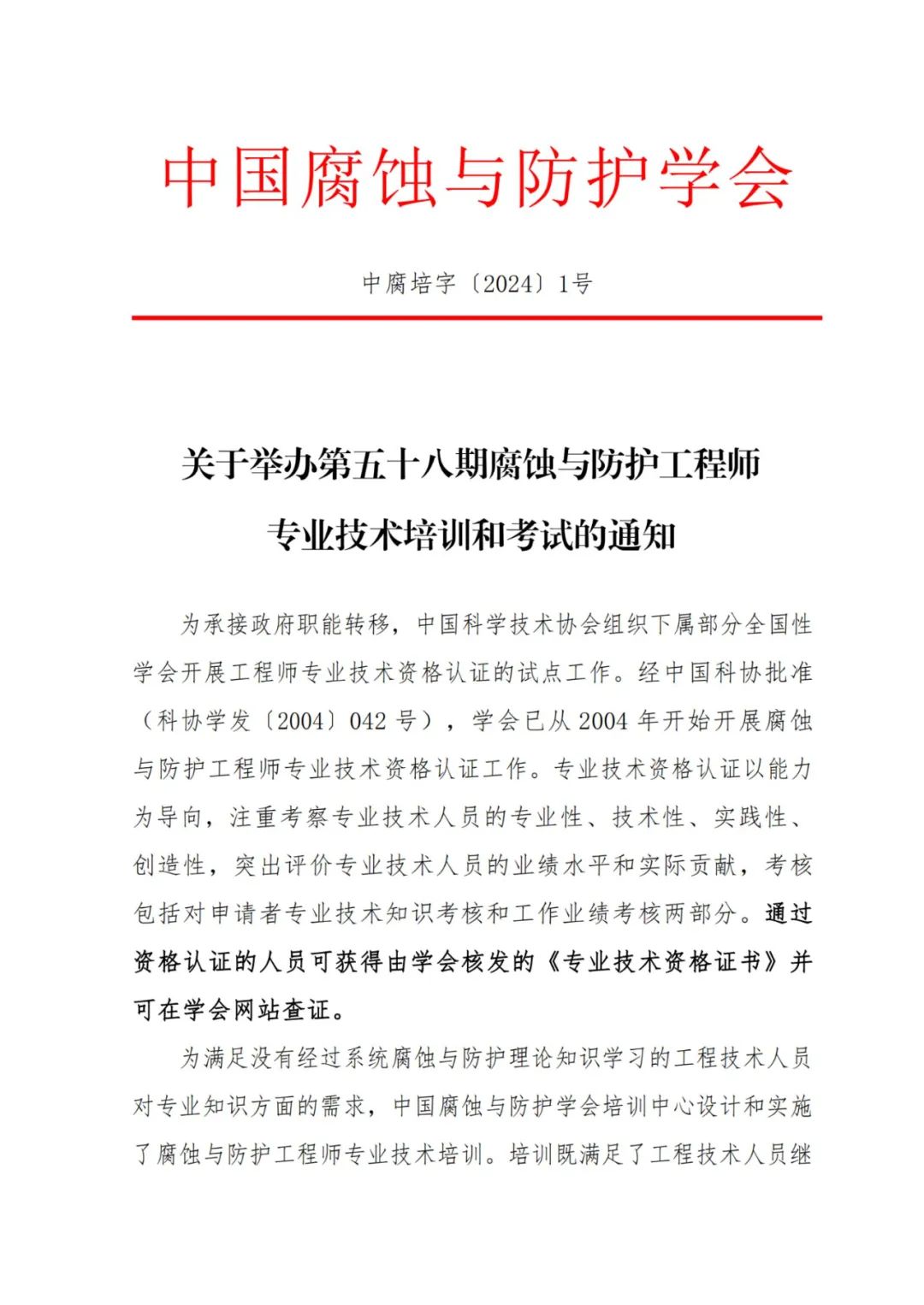 关于举办第五十八期腐蚀与防护工程师专业技术培训和考试的通知