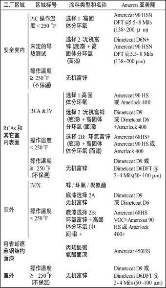 表6核岛内无放射性物质污染区域内涂层系统(金属表面)