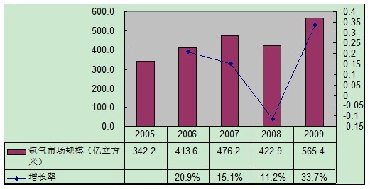 2005-2009年我国氦气市场规模及增速(数据来源:国家统计局)