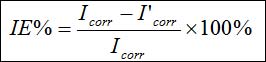 I’corr:不同缓蚀剂浓度下钢筋的腐蚀电流密度;Icorr:空白溶液中钢筋的腐蚀电流密度