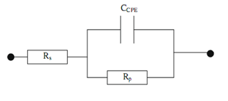 图3为钢筋在pH=12.5的孔隙液中的交流阻抗测试结果,经水化硅酸钙处理后,钢筋的容抗弧半径明显下降,且含量增加半径减小(图3a)。采用图4所示等效电路[8]对阻抗数据进行模拟(其中R1为孔隙液电阻,Rp为电荷转移电阻,CCPE为恒相角元件),得到不同添加量的水化硅酸钙处理前后钢筋的电荷转移电阻Rp(图3b)。可以看出,水化硅酸钙含量增加,Rp逐渐减小。说明,在pH=12.5的孔隙液中,水化硅酸钙含量越大,钢筋表面形成稳定钝化膜越困难,钢筋抵抗氯离子侵蚀的能力越弱,越易腐蚀。与极化曲线测试结果一致。