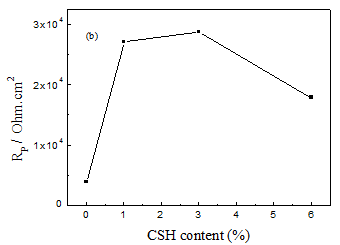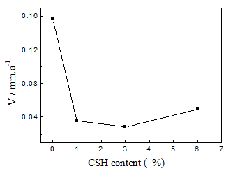 将钢筋浸泡在孔隙液中24h后,对其进行光学显微观察(图略)。发现,经水化硅酸钙处理后,钢筋的腐蚀得到很好的改善,改善程度随着水化硅酸钙含量的增加呈现先增大后减小的趋势,其中,含量为3%时,钢筋表面腐蚀最轻,与电化学测试结果一致。#p#副标题#e#