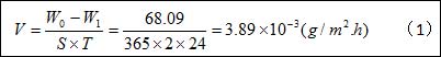 式1中:V-腐蚀速率( g/ m2.h);W0、W1 -试样腐蚀前后的质量( g);S-试验表面积(m2);T-试验时间(h)。