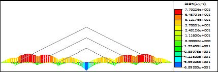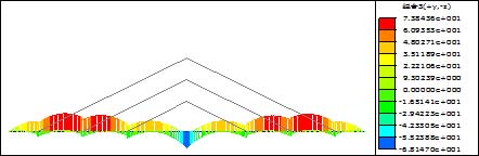 图2 初期(25年)钢箱梁下缘应力包络图(MPa)