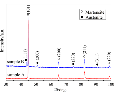 | Sample B | Martensite+ 6.2 vol% Austenite |