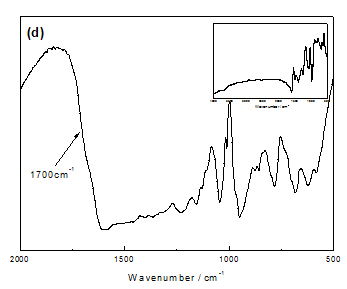 图3 不同聚吡咯膜在降解前(小图)后的红外图谱:(a)PPy/SO4膜表面;(b)PPy/SO4膜内部:(c)PPy/PSS膜表面;(d)PPy/PSS膜内部
