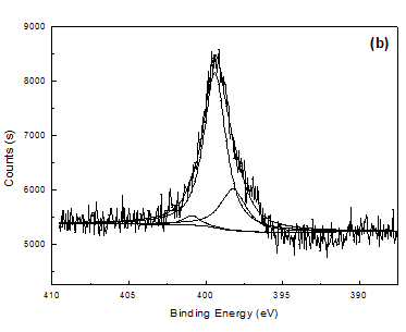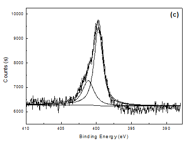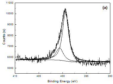 掺杂不同尺寸对阴离子(SO42-,PSS-)的聚吡咯降解前后膜成分的变化通过XPS测试进行分析。图4为掺杂不同尺寸对阴离子的聚吡咯膜的N 1s XPS能谱及分峰拟合,表2是XPS测试结果的定量分析。