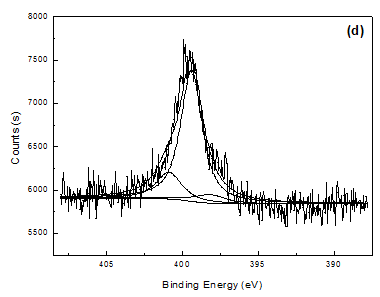 图4 不同聚吡咯膜的N 1s XPS能谱及拟合结果:(a)降解前PPy/SO4;(b)降解后PPy/SO4;(c)降解前PPy/PSS;(d)降解后PPy/PSS