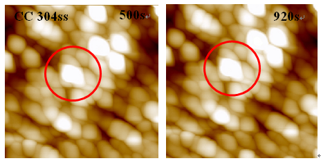 Figure 7. In-situ AFM images of CC 304ss in growth stage of passive film under anodic polarizationin in test solution