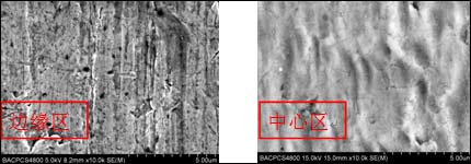 图3 八道次加工样品边缘和中心区电子显微镜形貌照片