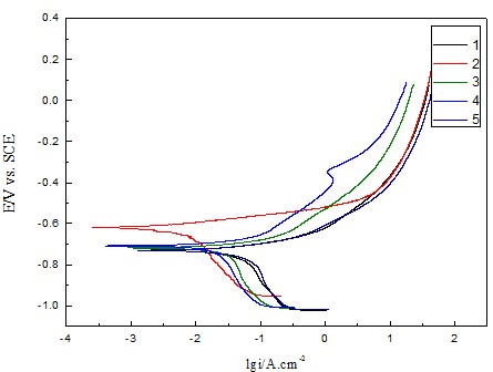 (1)式中:η为缓蚀率,%;Ic0为空白溶液中腐蚀电流密度,mA/cm2;Ic1为加缓蚀剂溶液中腐蚀电流密度,mA/cm2。