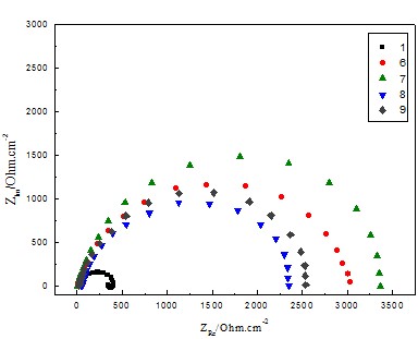 电化学阻抗谱均在开路电压下进行,所加正弦扰动电压幅值为10mV,交流新号频率范围为100KHz—10MHz。