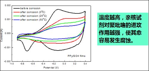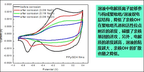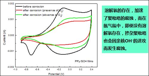 u溶解氧的存在和较高的环境温度会加剧聚吡咯的腐蚀,而高浓度的电解质对聚吡咯的腐蚀具有一定的缓蚀作用。