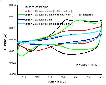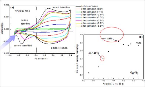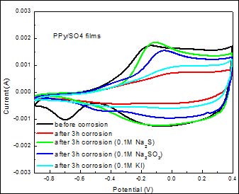 u保持聚吡咯膜处于一相对较负的电位下,可以有效地抑制其在碱性环境中的腐蚀。