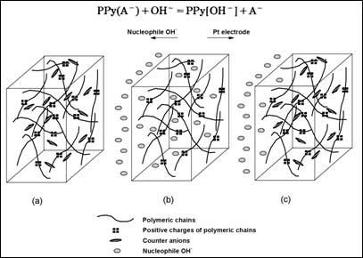 (b)掺杂小尺寸对阴离子聚吡咯膜处于碱性溶液中;