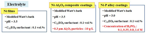 • Current density: 5 A/dm2 for Ni and Ni-Al2O3 deposits