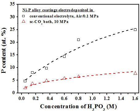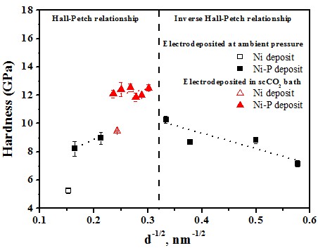 Carburization of metal can be achieved by electrodeposition in the sc-CO2 -containing baths. As a result, the hardness of Ni-based films deposited in the sc-CO2 bath was enhanced by the additional solid solution strengthening mechanism.