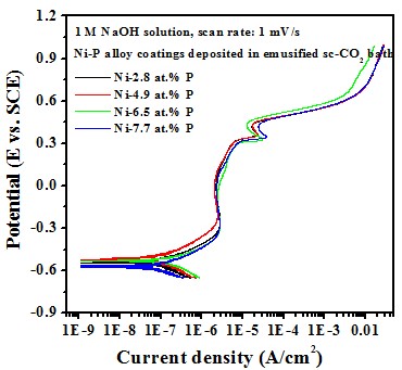 The high P content in the deposit was beneficial to enhance the corrosion resistance of the Ni-P alloy coating, in 1 M HCl solution.