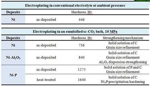 The Ni-based deposits could be successfully fabricated from an emulsified sc-CO2 bath.