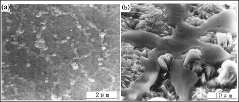 图2 Fe-25Cr合金在500oC氧化(a)及盐水蒸汽协同环境(b)服役10小时后表面形貌照片