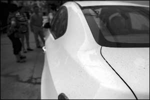 据车主介绍,7月1日当晚停在院子的汽车,都出现了类似的情况,至少有三十辆。初步统计,附近地区受此次酸雨影响的汽车总数有近百辆。一辆白色的别克英朗轿车情况看起来最严重,前引擎盖上密密麻麻全是黄色的锈斑,前脸的镀铬条上也已经被锈蚀。不仅如此,建筑物外墙的瓷砖、晾衣架等表面也出现了锈斑。