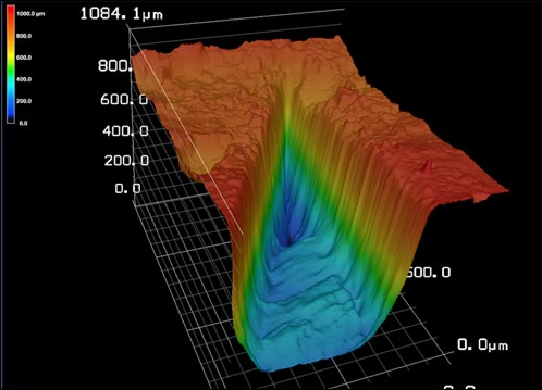 图1显示,高功率纳秒激光器在适当的脉冲宽度和扫描速度下,可以实现高分辨率的凹槽加工,其表面和侧面加工完整性良好,在激光共聚焦显微镜的观察中没有发现微裂纹。目前,此项新进展已经在“MP3 2014 & ICPBPT 2014高能束流加工技术国际学术会议”、“ASME/MSEC大会”等国际大会上获得同领域专家的一致好评,并在《中国航空制造技术》等期刊上发表相关文章。