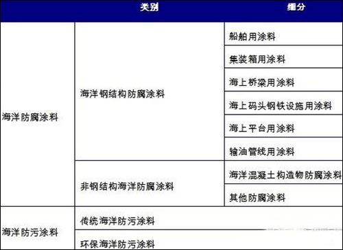 据了解,应用于海洋环境中的涂料被称为海洋涂料,主要包括防腐涂料和防污涂料两大类。按防腐对象材质和腐蚀机理不同,海洋防腐涂料又可分为海洋钢结构防腐涂料和非钢结构防腐涂料。海洋钢结构防腐涂料主要包括船舶涂料、集装箱涂料、海上桥梁和码头钢铁设施、输油管线、海上平台等大型设施的防腐涂料;非钢结构海洋防腐涂料则主要包括海洋混凝土构造物防腐涂料和其他防腐涂料。