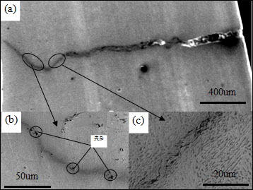 对失效钎头材料的力学性能测试表明,该材料的屈强比较高,材料的延伸率很低,塑性降低明显,表明材料在服役过程中发生了氢脆。