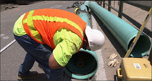 艾里克·加西提介绍,这些管网都是在100多年前建设的,当时普遍埋设的管道都是水泥管或球墨铸铁管,钢铁、ACP管等。目前大约半数的管道还剩下50年的使用寿命,长时间的污水冲蚀使它们慢慢老化,有的已出现裂缝,漏水事件不断出现。艾里克·加西提说:“100年前,洛杉矶有先进的基础设施,但现在已经过了100年了。我们已经开始重新建设下水道系统,着眼于目前的最新技术。我觉得,过去人们没有仔细考虑PVC或其他的管材。他们有一个保守的心态,洛杉矶市原来的管道是木制的。”