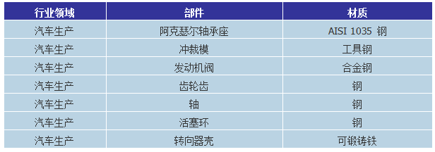 汽车生产行业推动了激光热处理加工的发展,下表列出了部分应用: