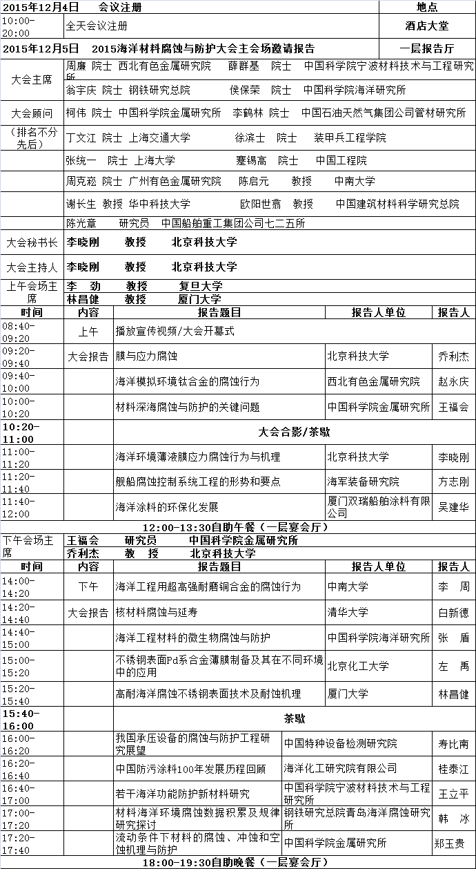 标签: 第二届海洋材料腐蚀与防护大会, 日程安排