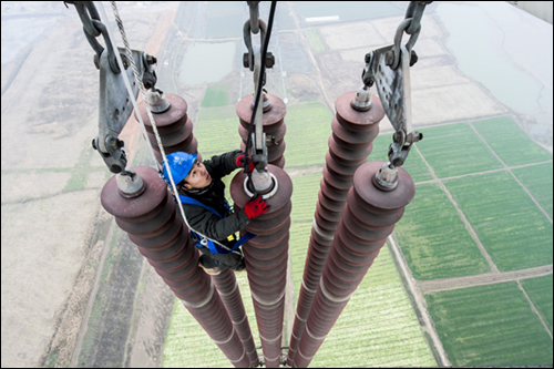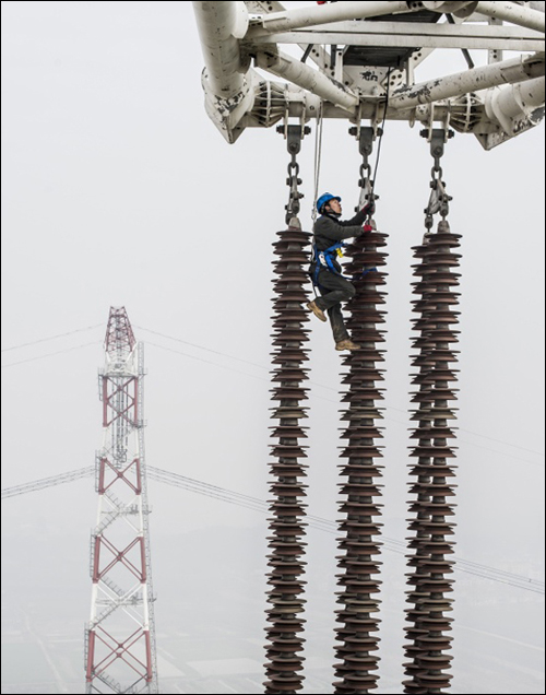 1月19日,湖北省送变电工程公司检修人员在安装金属附件腐蚀速度电荷量在线监测设备。该设备能对绝缘子钢帽的腐蚀状态进行连续监测,后续待建的特高压直流输电工程上盘形悬式瓷和玻璃绝缘子产品的设计、生产、运行维护提供技术支撑。