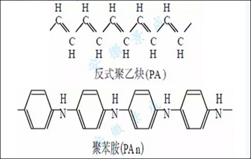 让涂层导电的方式常用的主要有两种办法,一种是掺杂导电,另一种是本征导电。掺杂导电涂料主体成膜物质本身无导电性,它以绝缘聚合物为主要成膜物质,在其中掺入导电材料而形成的涂料。它的导电性靠掺入的导电微粒来实现的,导电微粒提供自由电子载流子,掺入的导电材料这里主要是采用导电乙炔或导电石墨,将这些物质掺合到聚合物中,可使聚合物变为半导体。随着导电材料加入量的增加,导电性越好,电阻率越低,该方法是目前最常用的实际应用方法,成本低廉,材料易取得,掺杂后导电性能持久稳定,导电值易调节。随着导电填料粒子浓度的增加,粉末涂料的表面电阻率逐渐减小,当导电填料浓度达到某一临界值时,粉末涂料的表面电阻率急剧减小,出现由绝缘性到导电性的性质突变。该临界值称为渗滤阈值。影响渗滤阈值的因素较多,包括导电填料的种类、结构及形态、粉末涂料基体与导电填料的相互作用、加工条件等。下图是两种导电材料结构式: