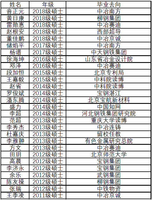 招收名额:冶金工程、材料加工工程、材料科学与工程方向