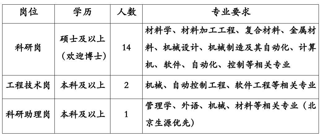 标签: 北京机科国创轻量化科学研究院有限公司, 招聘, 材料类, 毕业生