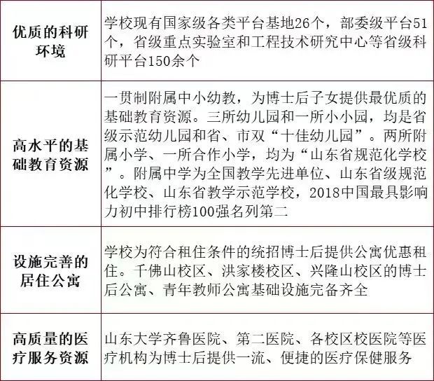 9.山东省博士后创新人才支持计划:不少于30万综合年薪+充足科研经费(在站期间,自然科学领域不少于20万元)。