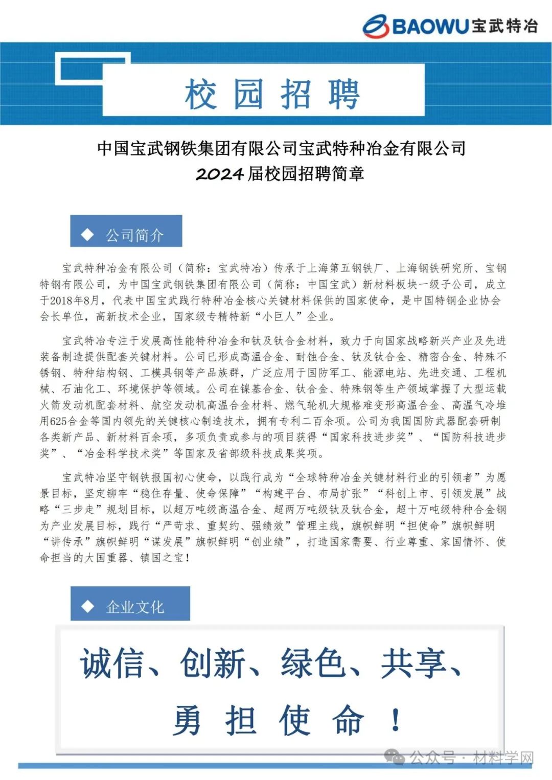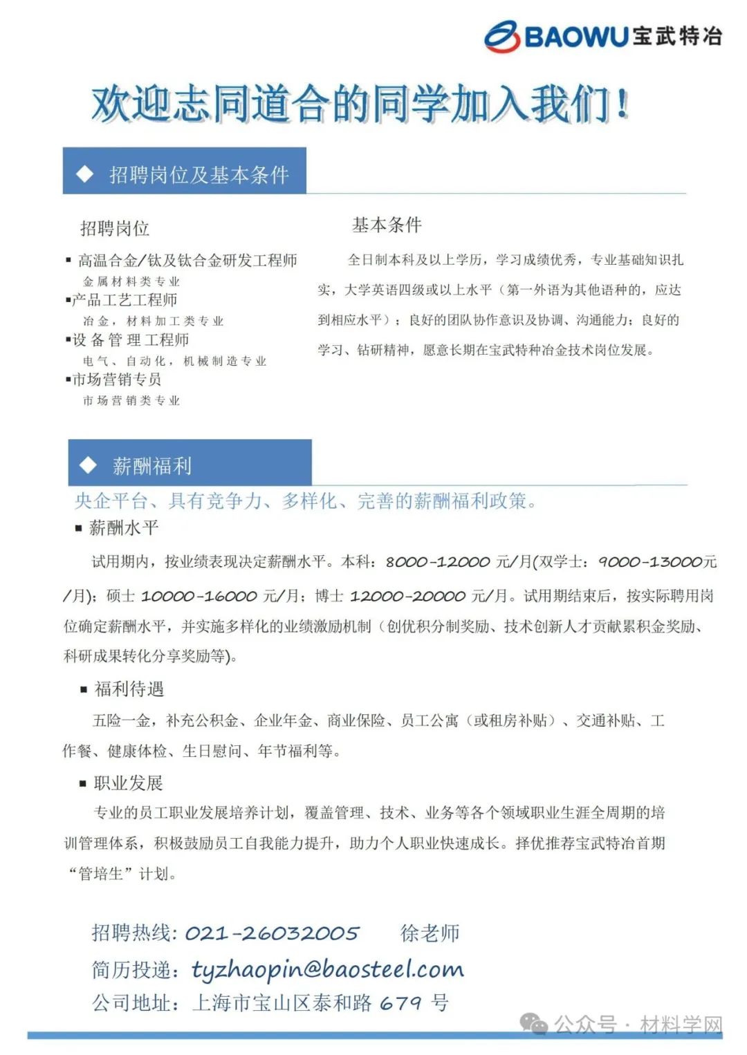 【招聘】博士月薪2万!硕士1.6万!五险一金!中国宝武钢铁集团有限公司招聘材料毕业生!