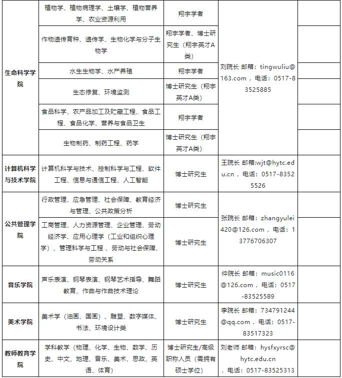 3.人事处网址:https://rsc.hytc.edu.cn/rczp.htm,人事处邮箱:hysfxyrsc@hytc.edu.cn。