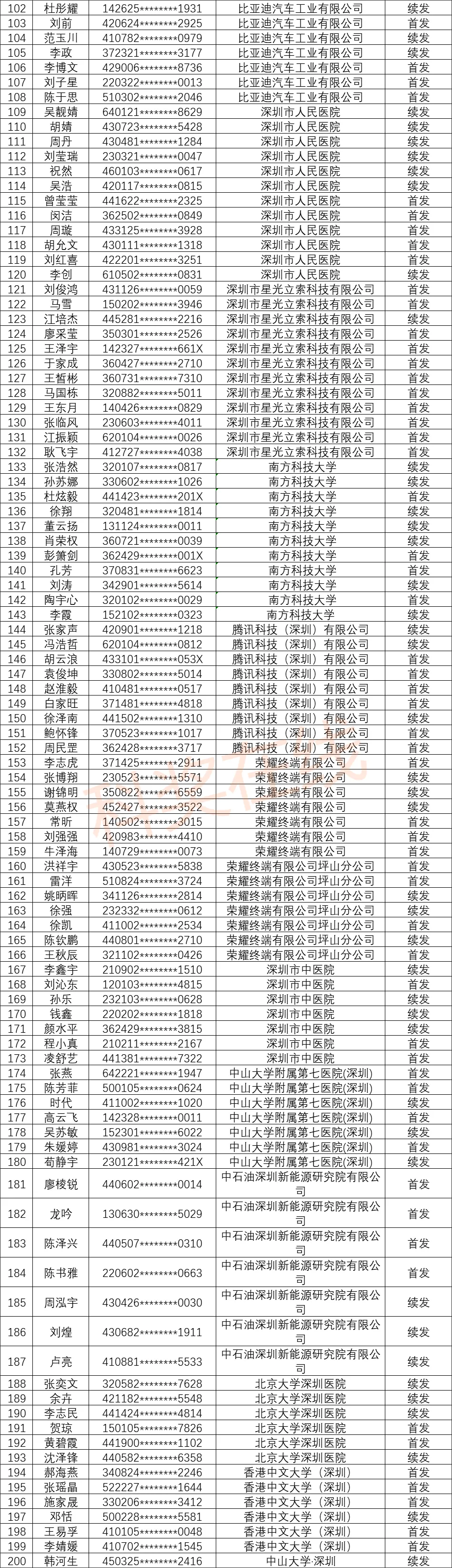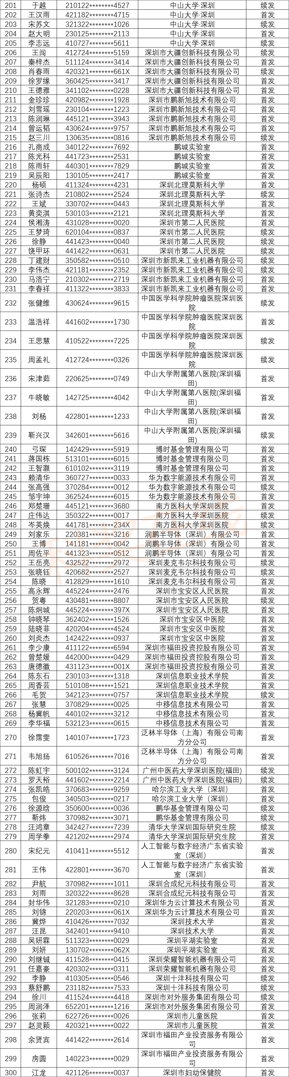 2025年第一批深圳市新引进博士人才生活补贴拟发放名单公示