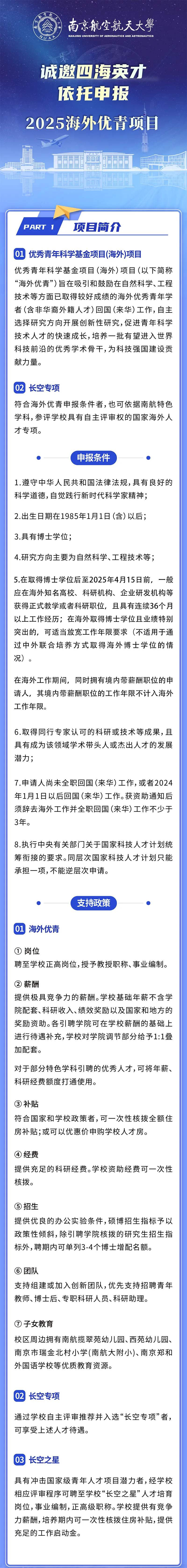 7项支持政策!南京航空航天大学诚邀海内外英才申报海外优青