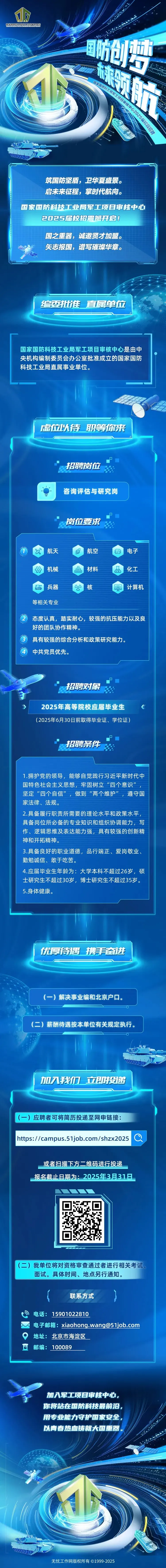 招聘 | 待遇优厚!国家国防科技工业局军工项目审核中心2025届招聘材料毕业生