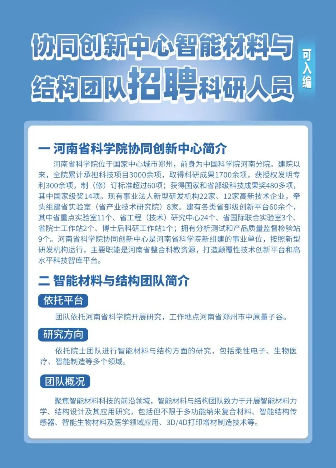 招聘| 年薪50万!待遇优厚!河南省科学院协同创新中心招聘材料毕业生!