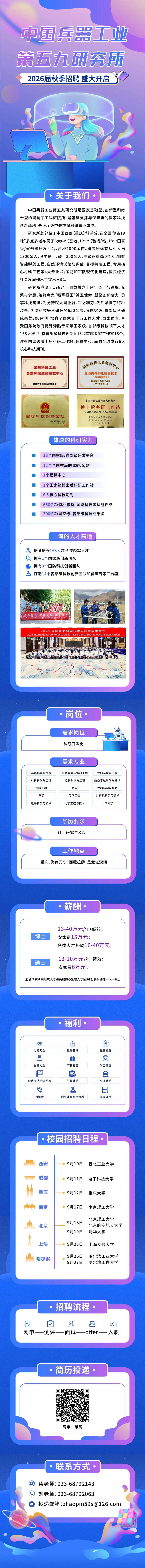 【招聘】博士年薪40万!补贴55万!中国兵器工业第五九研究所2026届秋季招聘材料毕业生
