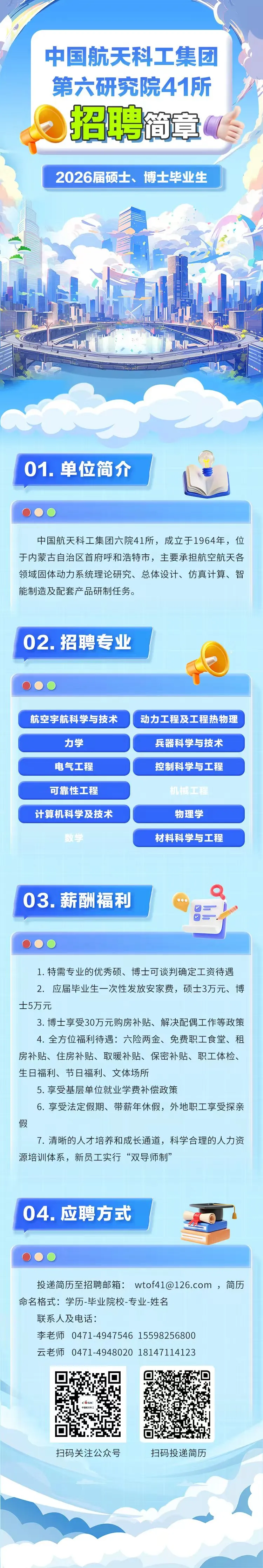 国防招聘丨待遇优厚!中国航天科工集团第六研究院41所招聘材料类毕业生。