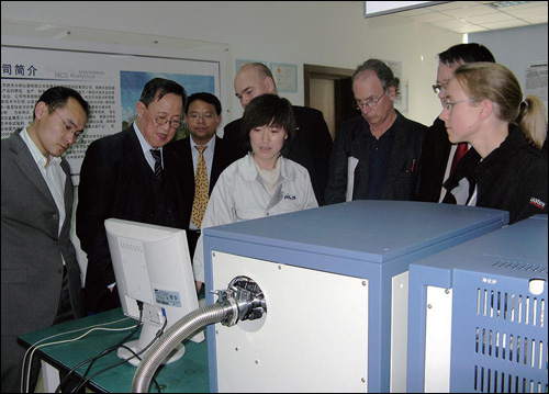 陪同外宾参观材料表征实验室及惰气脉冲熔融-飞行时间质谱检测仪