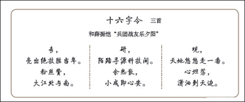 总结林老师的一生,他和(hè)薛振恺“兵团战友乐夕阳” 时写的一首词--“十六字令”是最合适不过的。