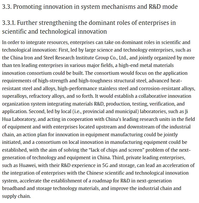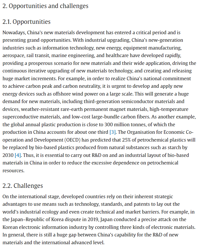 近日,国家新材料产业发展专家咨询委员会主任、中国工程院原副院长干勇院士署名文章《Research on the Innovative Development of New Materials Science and Technology in China》在中国工程院院刊 《Engineering》上发表,文章指出目前我国新材料产业发展和材料研发创新的现状与不足之处,并提出解决问题的思路:采取有力措施整合优势资源,建设完善新材料科技创新平台;加强政府和资源持续流入材料基础、共性技术和交叉、前瞻性技术,推动新材料基础研究和关键技术攻关;同时指出加强产学研协同,加强国际交流合作的重要性,共同推动新材料技术的创新发展。文章内容可点击链接查看原文:https://doi.org/10.1016/j.eng.2023.03.022